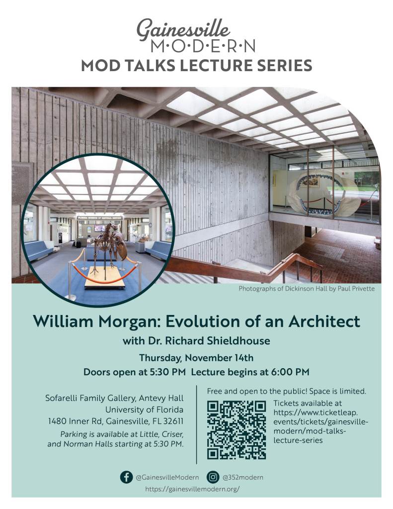 Gainesville Modern is honored to host Dr. Richard Shieldhouse, author of “William Morgan: Evolution of an Architect.”